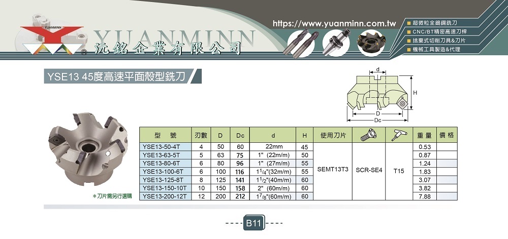 SE13 45度高速平面殼型銑刀(B11)